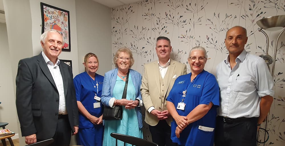 We were able to take David to view two of the rooms we have made over (The Cardiac Day Case Unit room and Nephrology Quiet Room); David appreciated the need for these spaces and non-clinical décor of the rooms, while Nav, Sarah and Kindre outlined the important difference they make for patients, families and staff.
